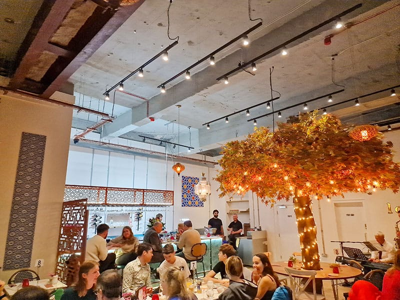 Our Moroccan / Turkish / Mediterranean themed venue includes a beautifully illuminated 3.3 metre tall tree, marble tables and elegant lamps. Some original features from its days as a bank have been retained, like the mosaic tiled floor.